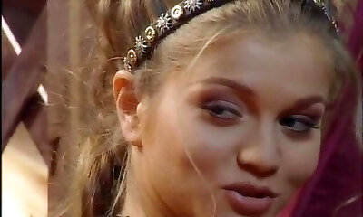 A couple is having fun with a stunning russian honey, Margo Von Teese.