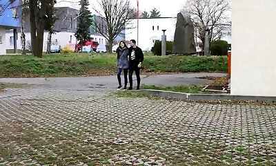 Juicy dusky European biotch featuring hot sex action ending with cumshot in public place