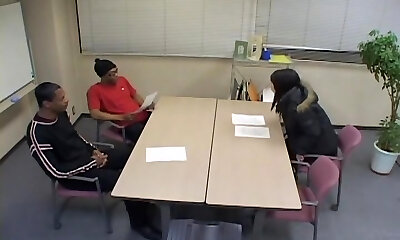 Japanese floozy in a molten three-way action with 2 black dudes