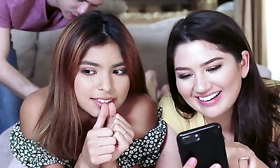 Natasha Adorable and Vanessa Dark-hued pegging a guy from the coffee shop