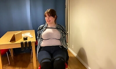 chubby and busty lady reaches an impressive orgasm on the floor by a dildo