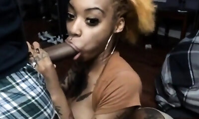 Black Beauty's Lips and Tits Covered in Jizm