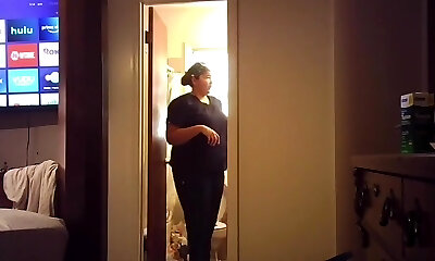Kinky hidden cam vid of my own slim chick flashing her ass in the bedroom
