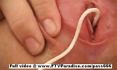 Lovely girl Penny stuffs her pussy with some soapy fabrics