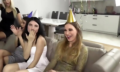 Buxom sexy chicks go wild at the soiree and win a chance to be fucked hard