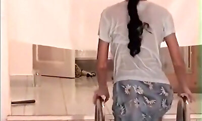 Skinny honey Maria enjoys flashing her paramour and plays with her slit
