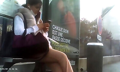 Cougar masturbation in bus