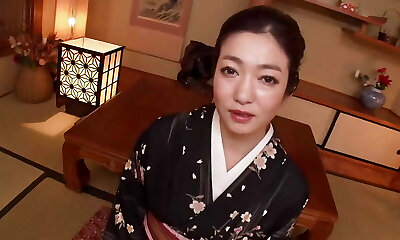 Mature Woman in Black Yukata Has Sex with Man at Scorching Spring Motel