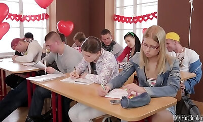 Schoolgirl HANDJOB FOR CLASSMATE UNDER THE TABLE DURING LESSON