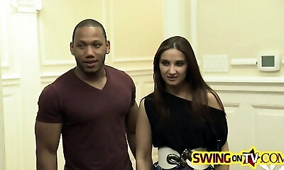 Horny fledgling swingers fuck in interracial five