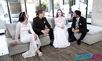 Lewd bride Missy Monroe gets dual-teamed in hardcore MMF vignette