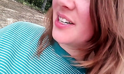 Torrid slender nymphomaniac in green dress pisses in the woods