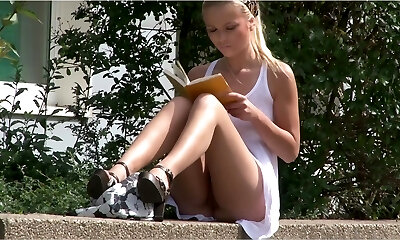 Blondie in milky Lindsey Gayle Evans acts so seductive