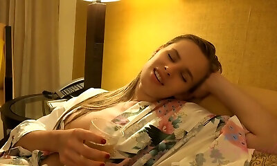 Sexy blonde girlfriend Tiny Teen loves to ride her bf
