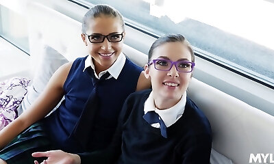Domineering MILF Guides Two Teenies Into Lesbian Strapon Sex