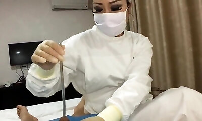 Hot asian nurses rubbing shaft for man chowder sample