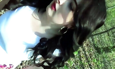 Slutty brunette in sunglasses loves pissing on the grass