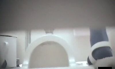 College Girl chick gives a blowjob to her friend and gets fucked in the restroom