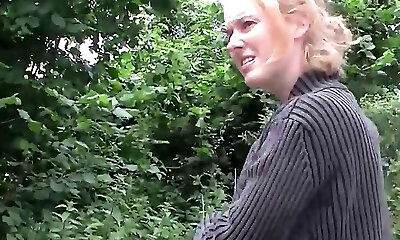 Ginger-haired Deutsch milf works that big cock with her ass and hatch in the park