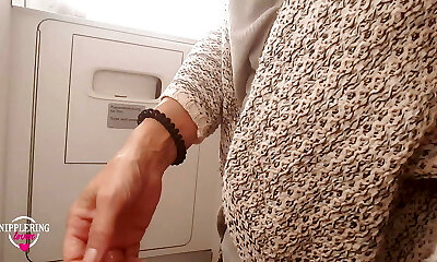 nippleringlover wild milf pissing on public toilet in airplane flashing pierced pussy and extreme pierced nips