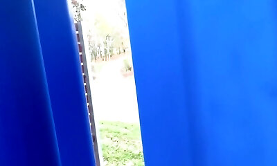 Curvy white lady in tight jeans showcases her big booty on voyeur cam