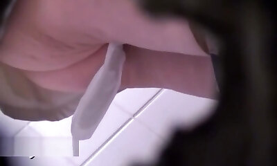 pissing a young damsel in a public toilet